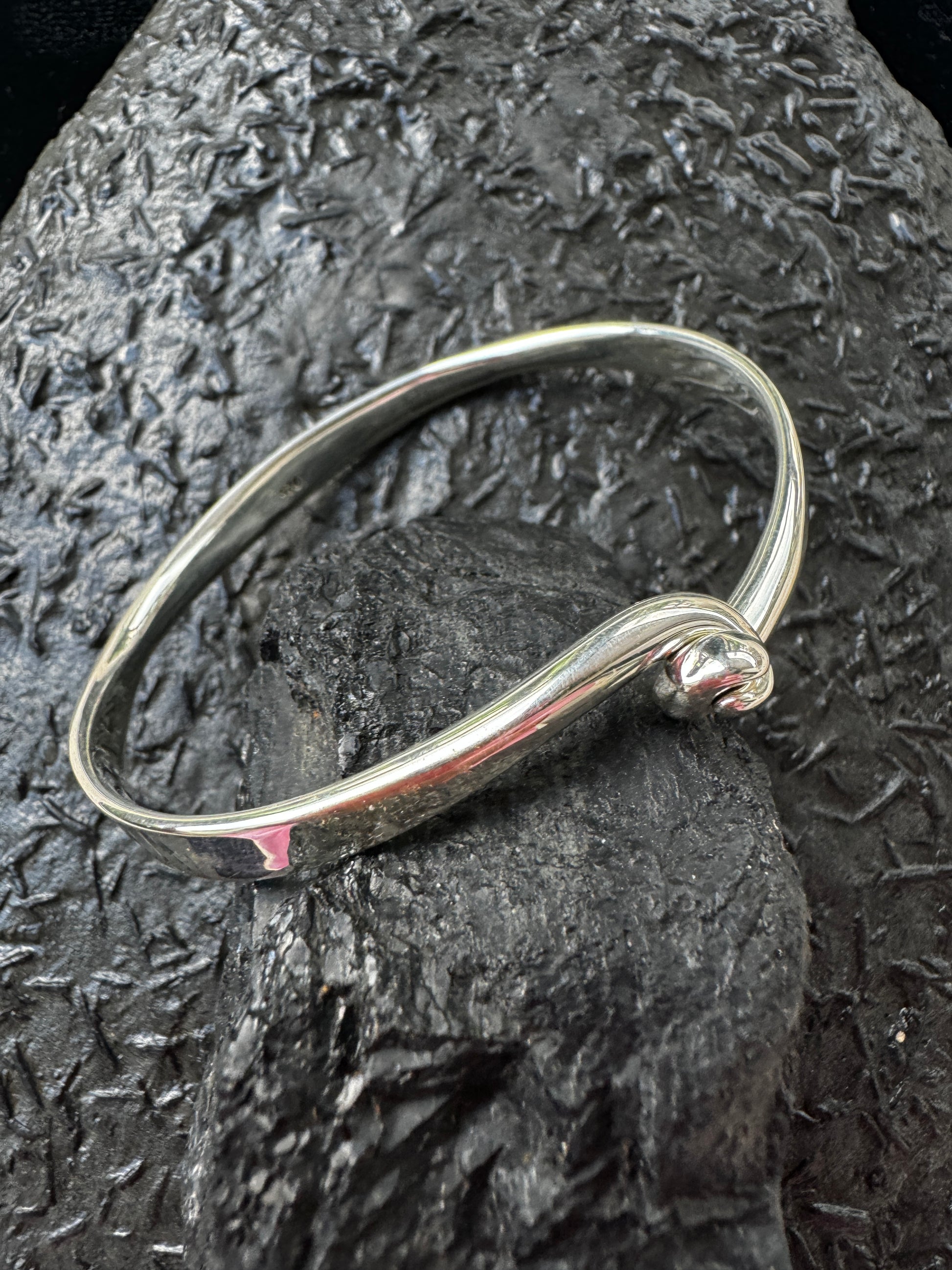 A wonderful addition to your collection... and that of a friend. The closure is reminiscent of the pinky promise between chums and soulmates. And we love the opportunity for hand engraving on the backs side, appropriately enough... the pulse point. The inside diameter measures approximately 6.5cm x 7.5cm / 2.25" x 2.5" The "Pinky Promise" bracelet will become a second skin bracelet you won't want to take off.